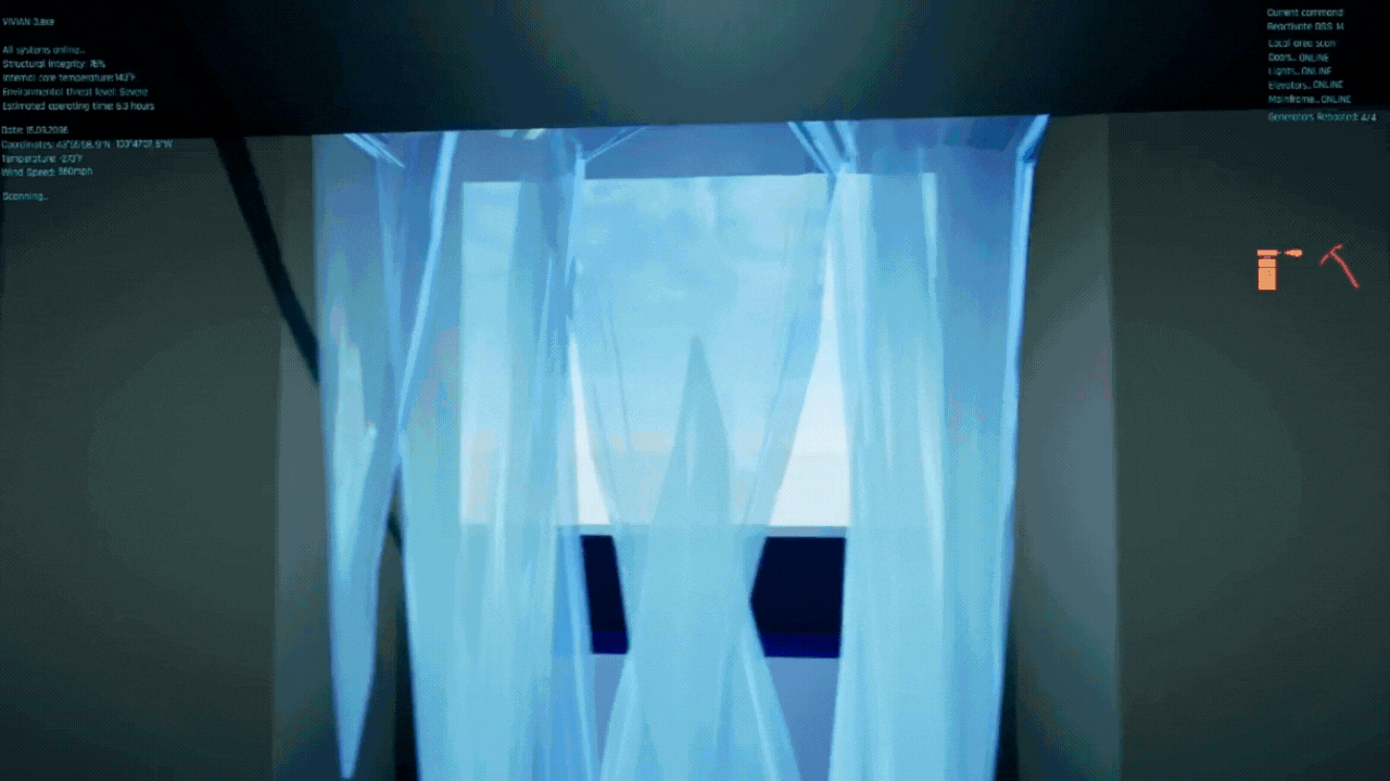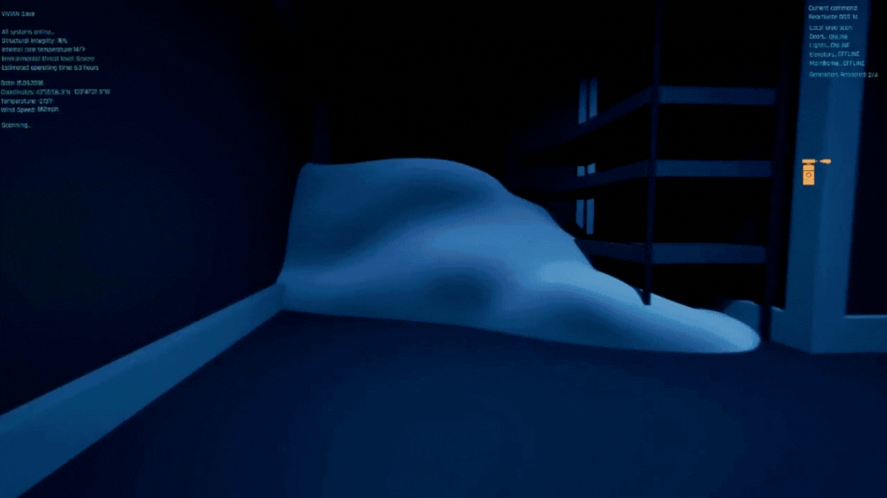 However, I also wanted to reward players for exploration and curiosity, so I designed each floor to include several hidden areas that could be accessed using these same puzzle mechanics. These areas primarily contained additional text datapoints that gave extra depth to the game's backstory, helping the player to piece together the fate of the bunker's inhabitants, uncover information about the fatal collapse of the planet’s biosphere, and also shed light on the identity of the human survivors trapped in orbit.
