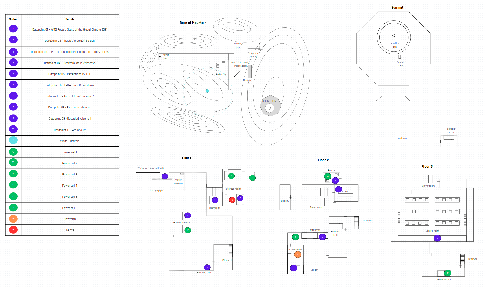 • Player can return to Floor 1 with the blowtorch to open up new areas, revealing additional datapoints, though this not necessary to complete the main objective.