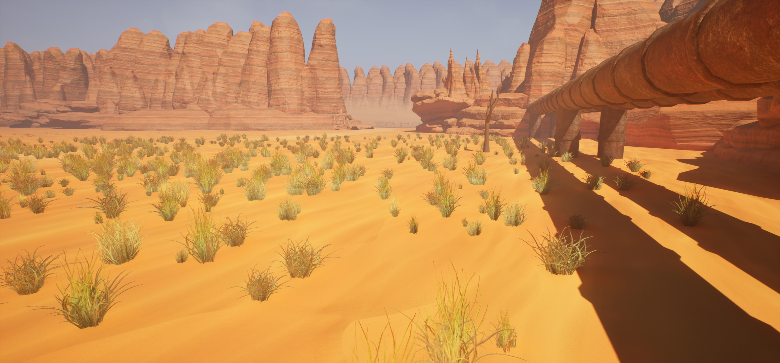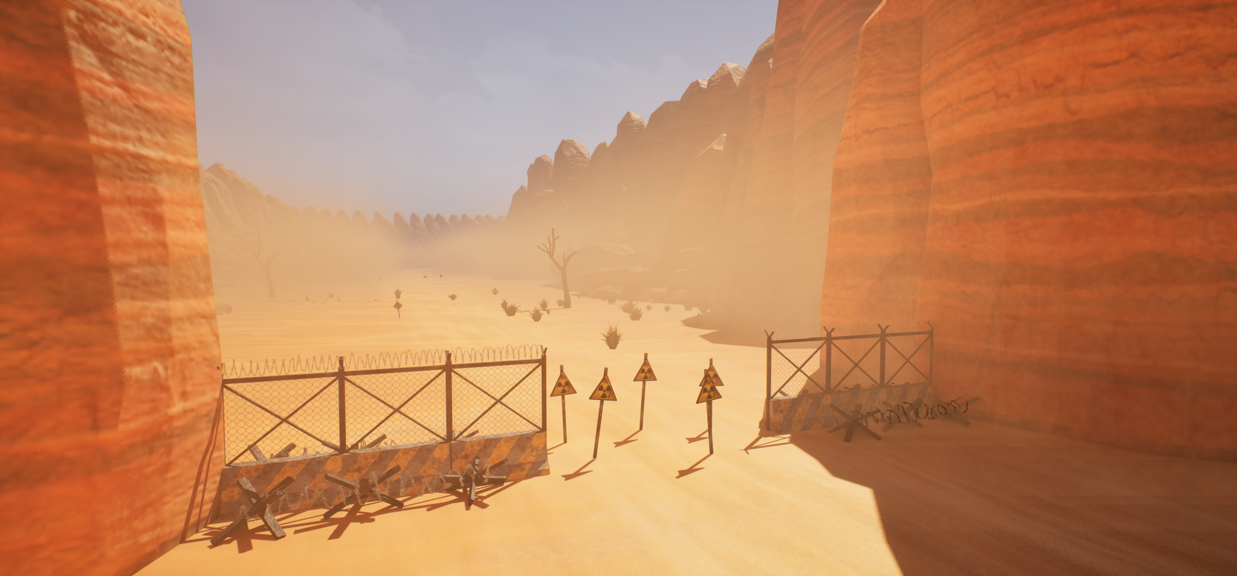 Next I moved onto level design, creating the first iteration of the tutorial level. This was also a chance to experiment with Unreal Engine’s world partitioning system, which I was using for the first time, as this was intended to be used later to create the open world level. I also added several important level actors, such as customisable enemy spawners, destructible foliage and environment props, and sandstorm walls that functioned as level boundaries.