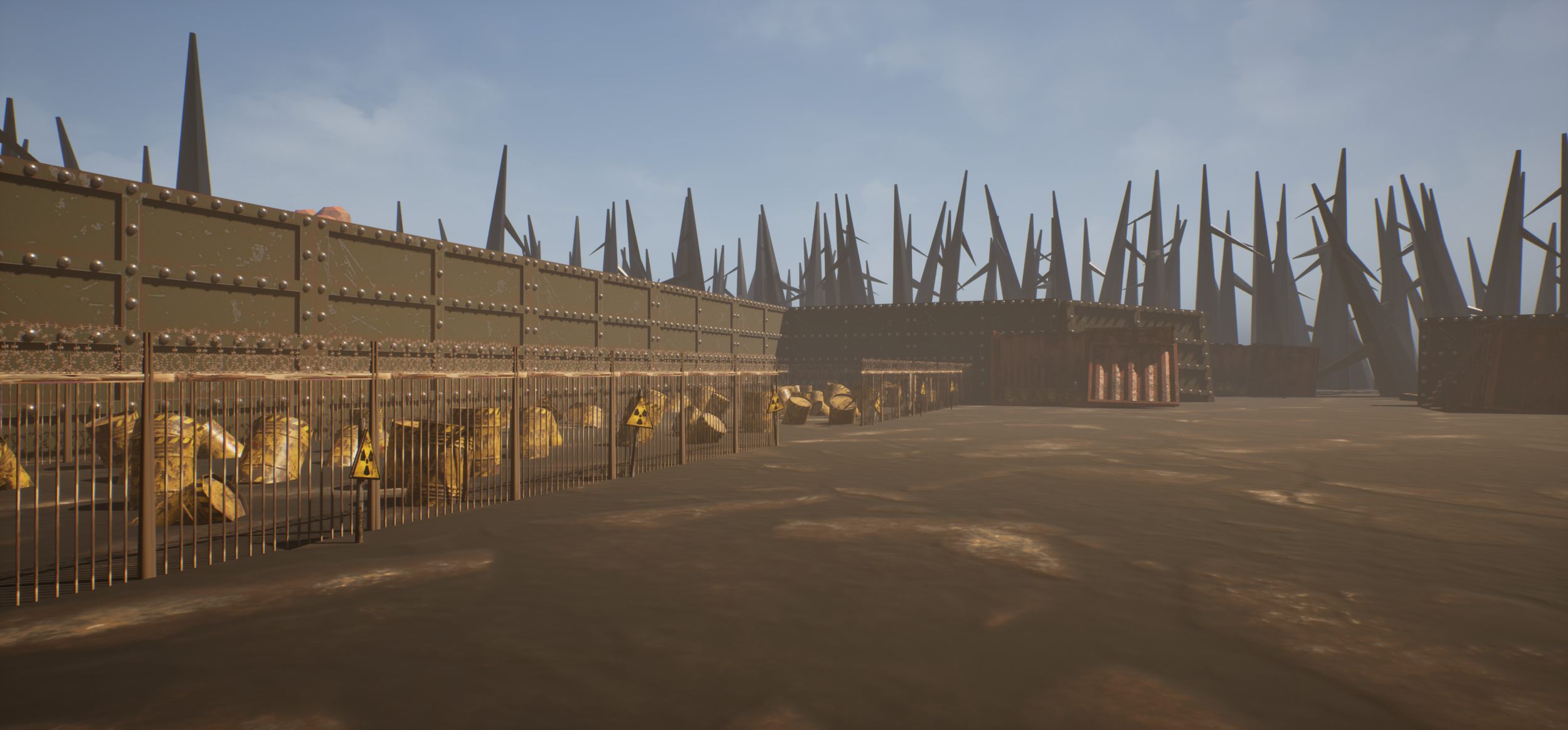 Based on the conceptual “spike fields”, a proposed technique for long-term nuclear waste warning. Consists of towering metal spikes protruding from the ground.