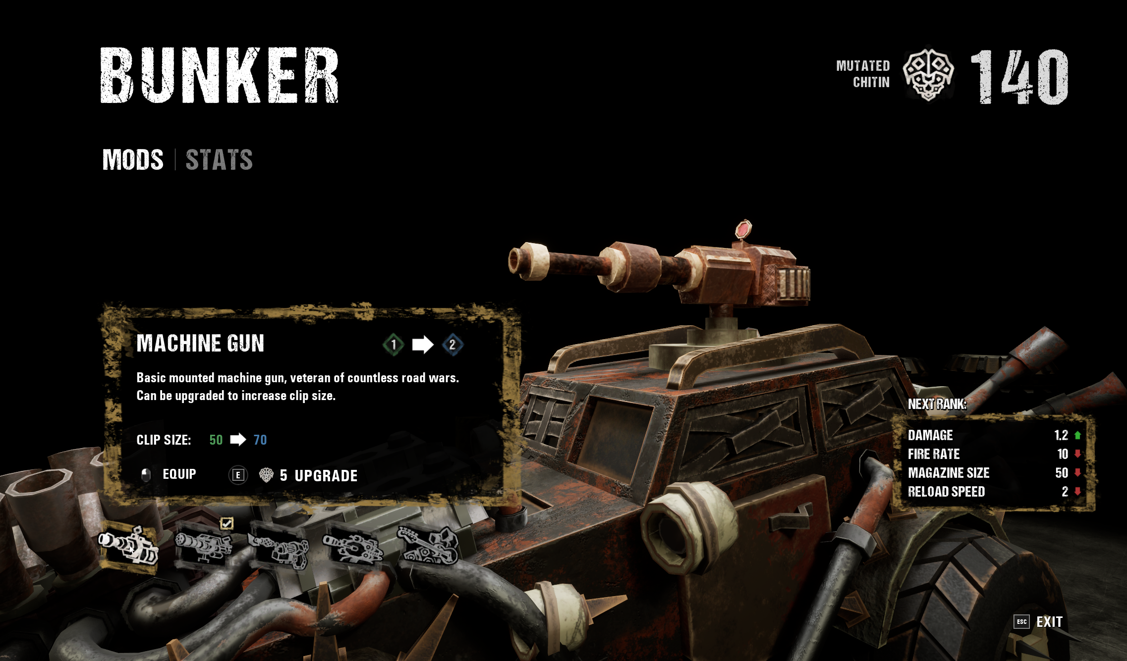 In between expeditions, you can customise your rig with different weapons and modifications, including new tires, engines, fuel tanks, bumpers and mounted guns. Each vehicle modification provides a unique gameplay ability or effect, allowing you to combine them in different ways to unlock your vehicle's full potential.