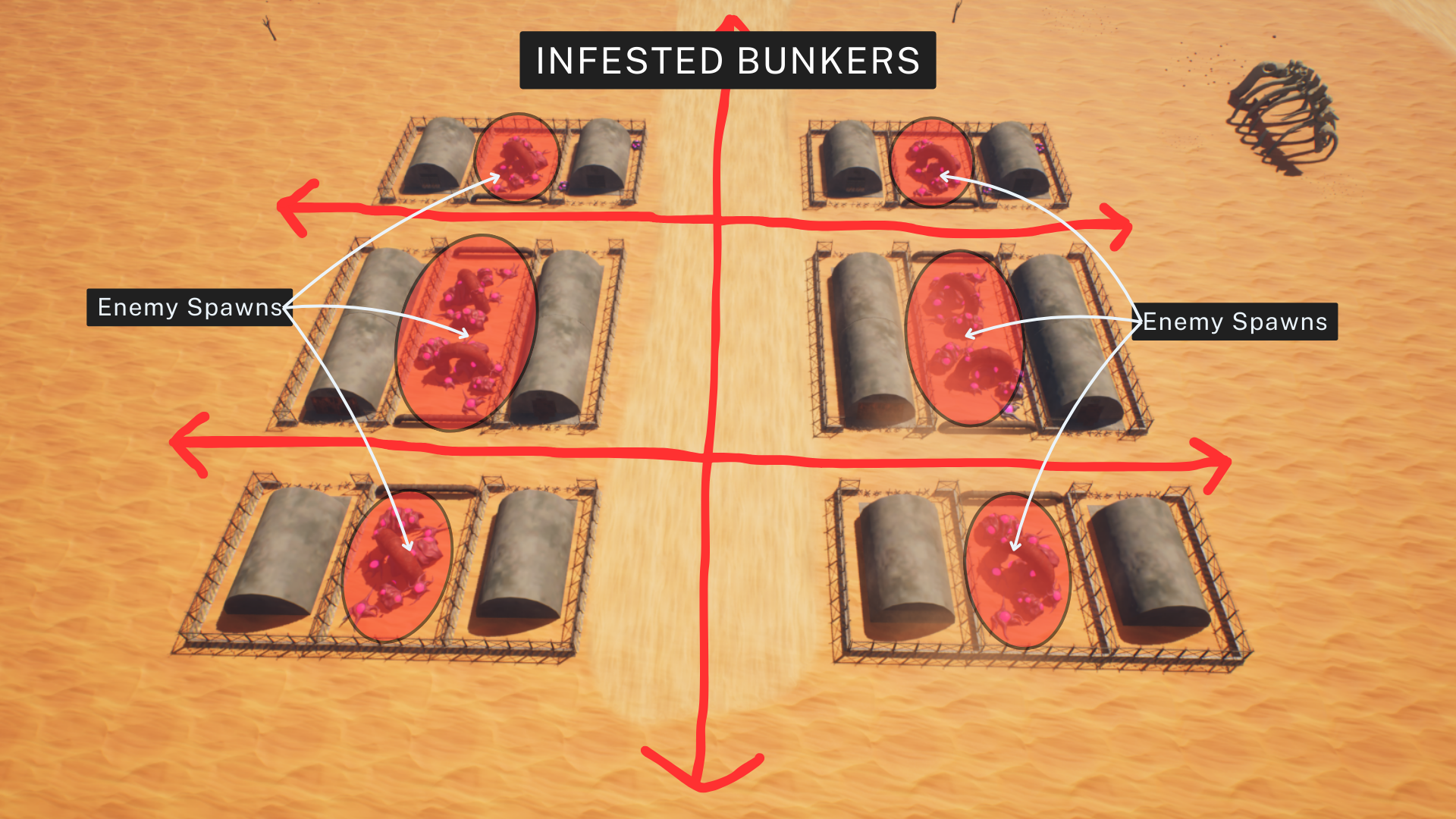 These issues were ruining the flow of gameplay, as our intended experience was for players to be mowing down a seemingly never-ending swarm of bugs as they blazed across the desert. Having to disengage and run away from swarms to get more ammo was making players feel weak and underpowered.
