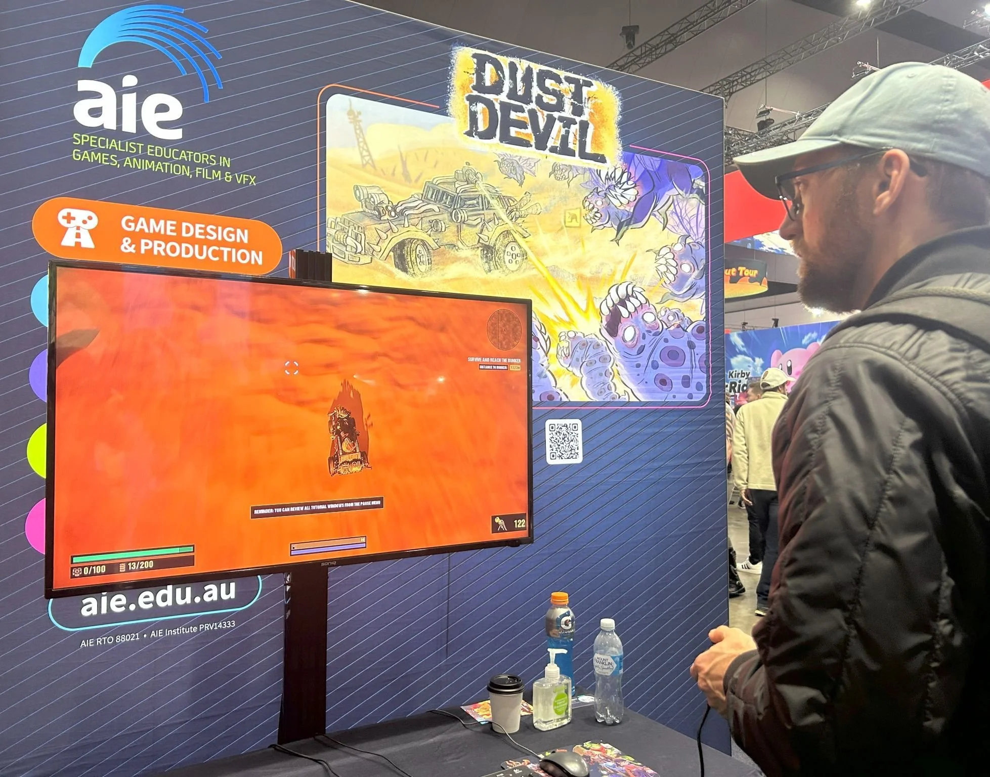 Shortly after entering Alpha, we were informed by AIE that Dust Devil had been selected as one of the games that would be exhibited at the AIE booth at PAX Aus 2025. We were among eight teams selected from across Australia, and the only team from the Sydney campus that was enrolled in the Advanced Diploma course.