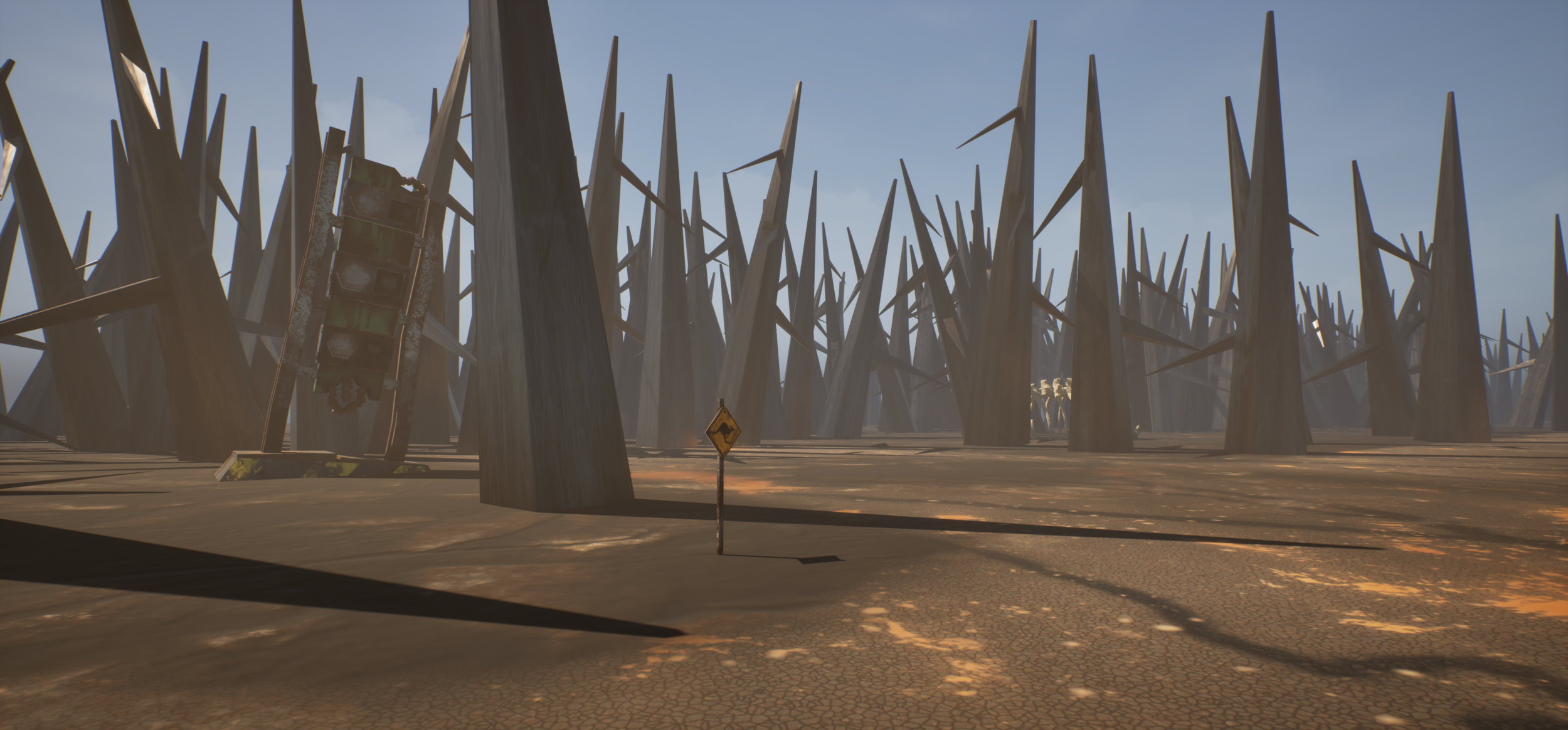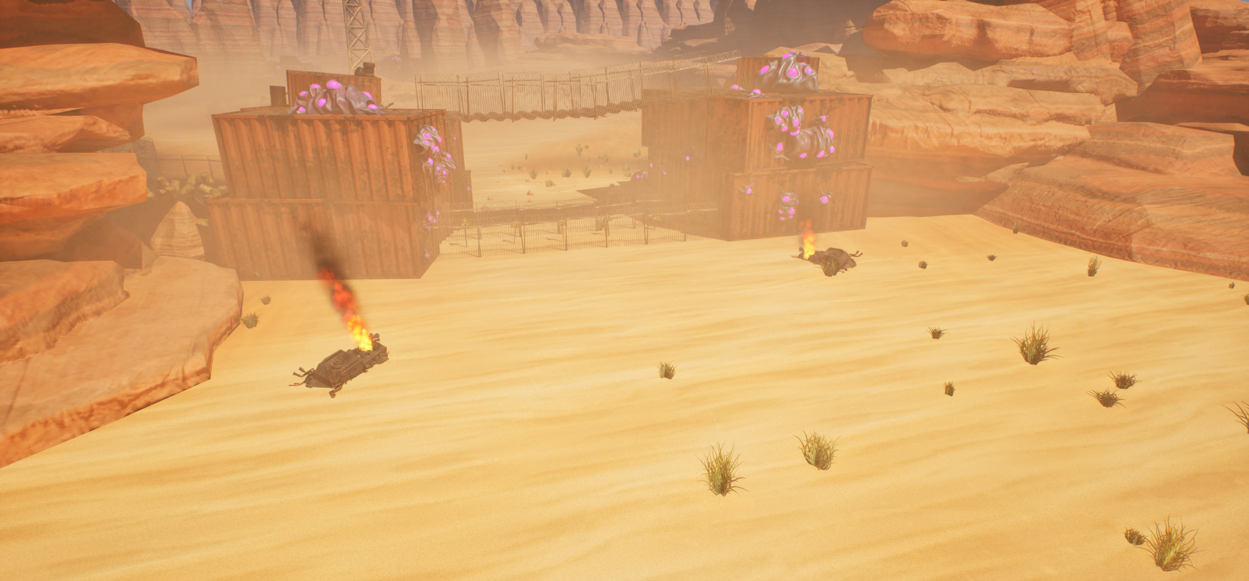 This issue was partly mitigated by introducing more destructible actors, allowing the player to smash through most environmental obstacles, but I also wanted to design the different level areas to streamline vehicle movement and prevent these issues from arising.
