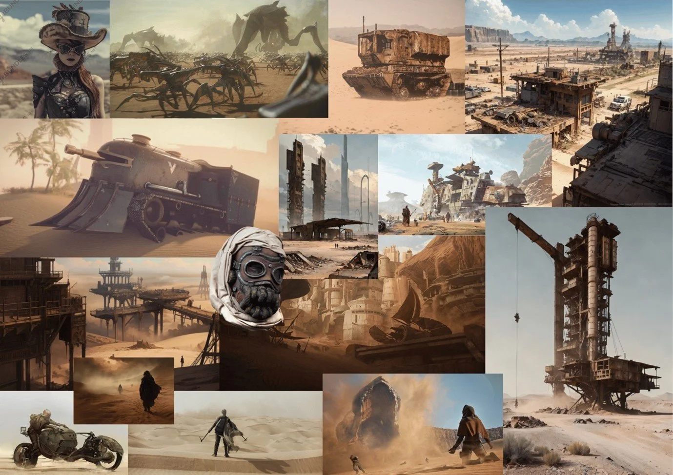 The concept behind Dust Devil was heavily inspired by Mad Max, invoking that same dieselpunk aesthetic with its rusty scrapyard vehicles and endless expanses of desert, blended together with high octane action and visceral combat. Yet rather than face off against other vehicles, the player would battle swarms of mutated bugs. The look and feel of the bug enemies had various inspirations, including the arachnids from Starship Troopers, the sandworms from Dune, and the Terminids from Helldivers.
