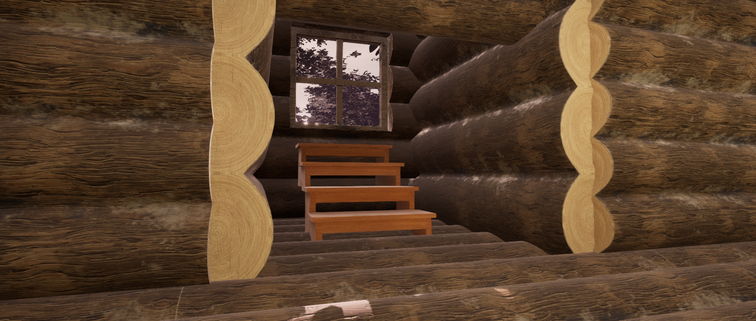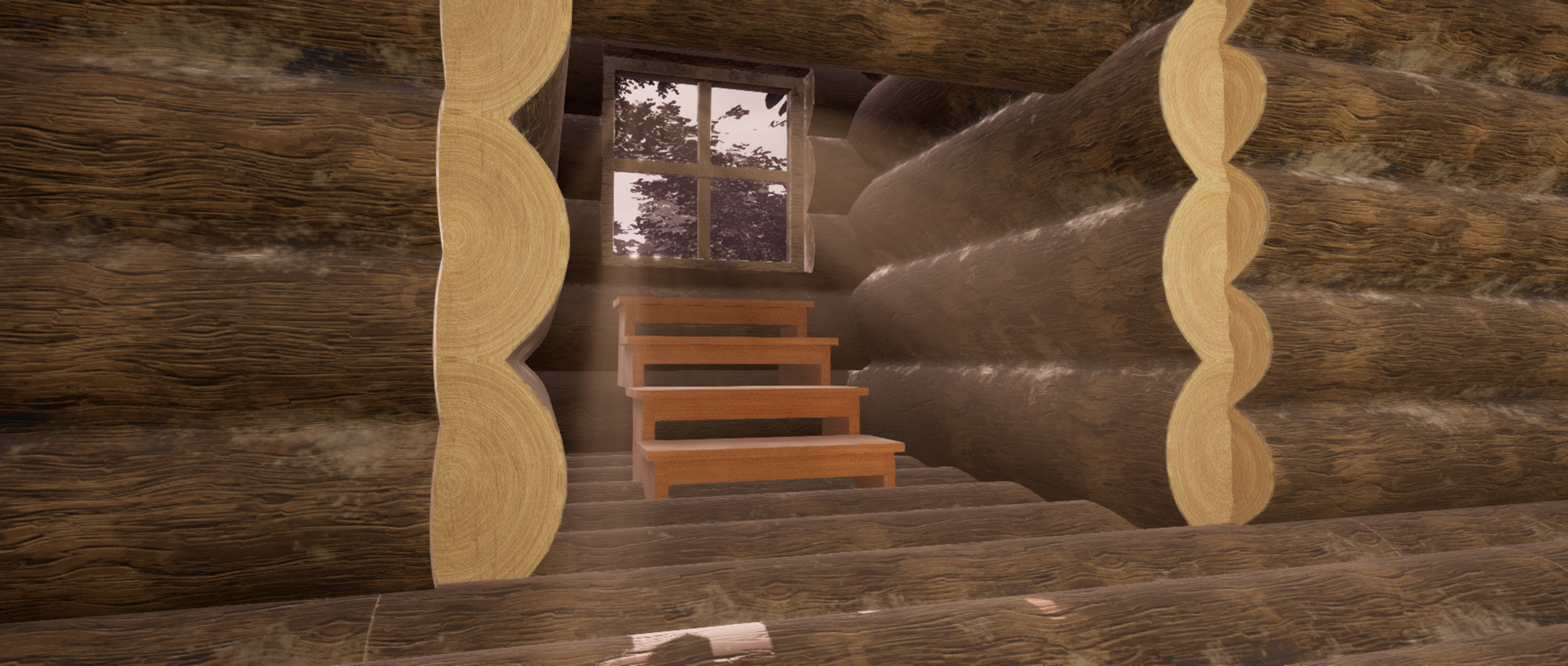 With level geometry done, I moved onto lighting for the treehouse. To achieve a surreal, dreamlike atmosphere I focused heavily on the use of bloom and light shaft, particularly inside doorways and windows.
