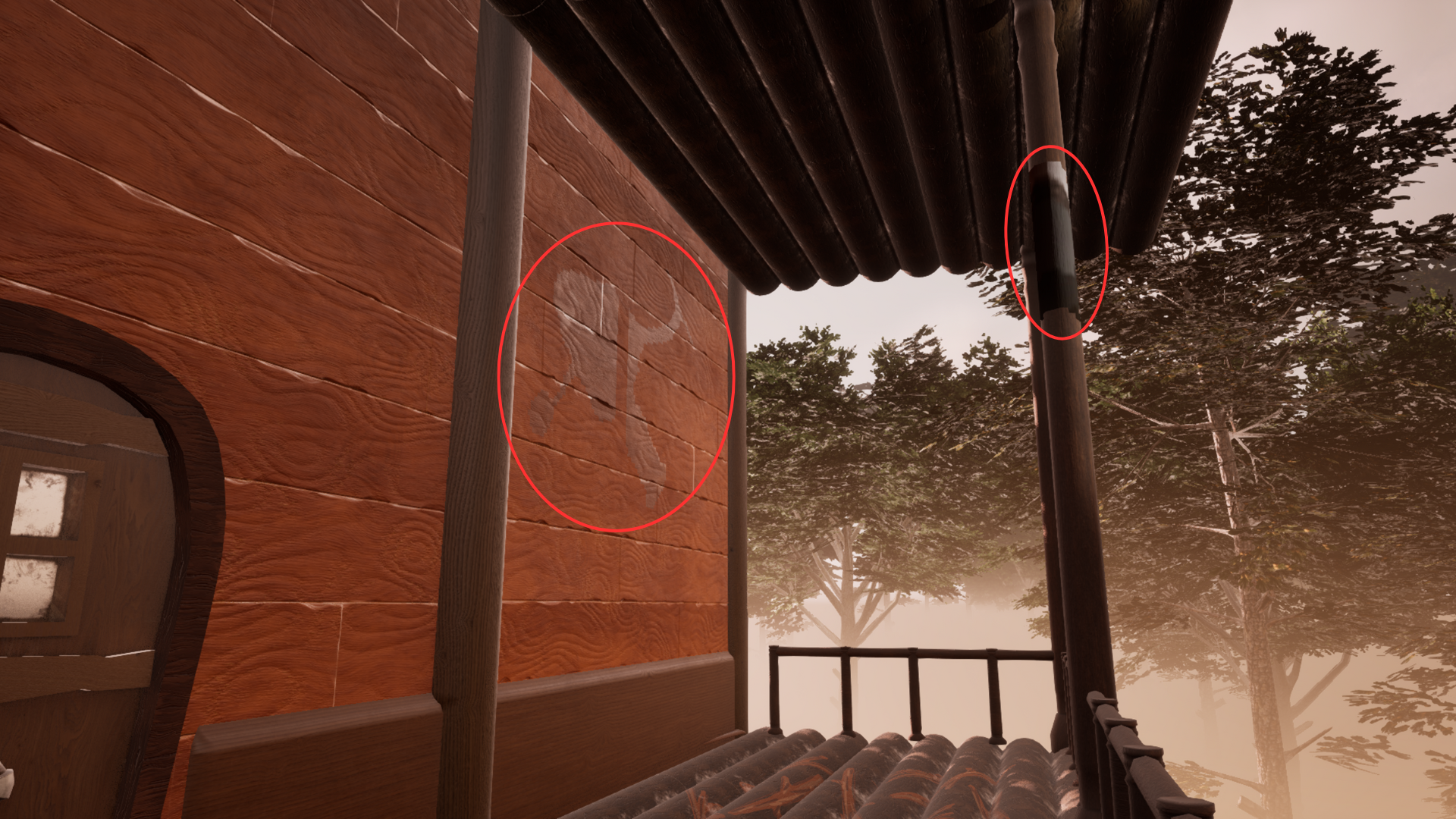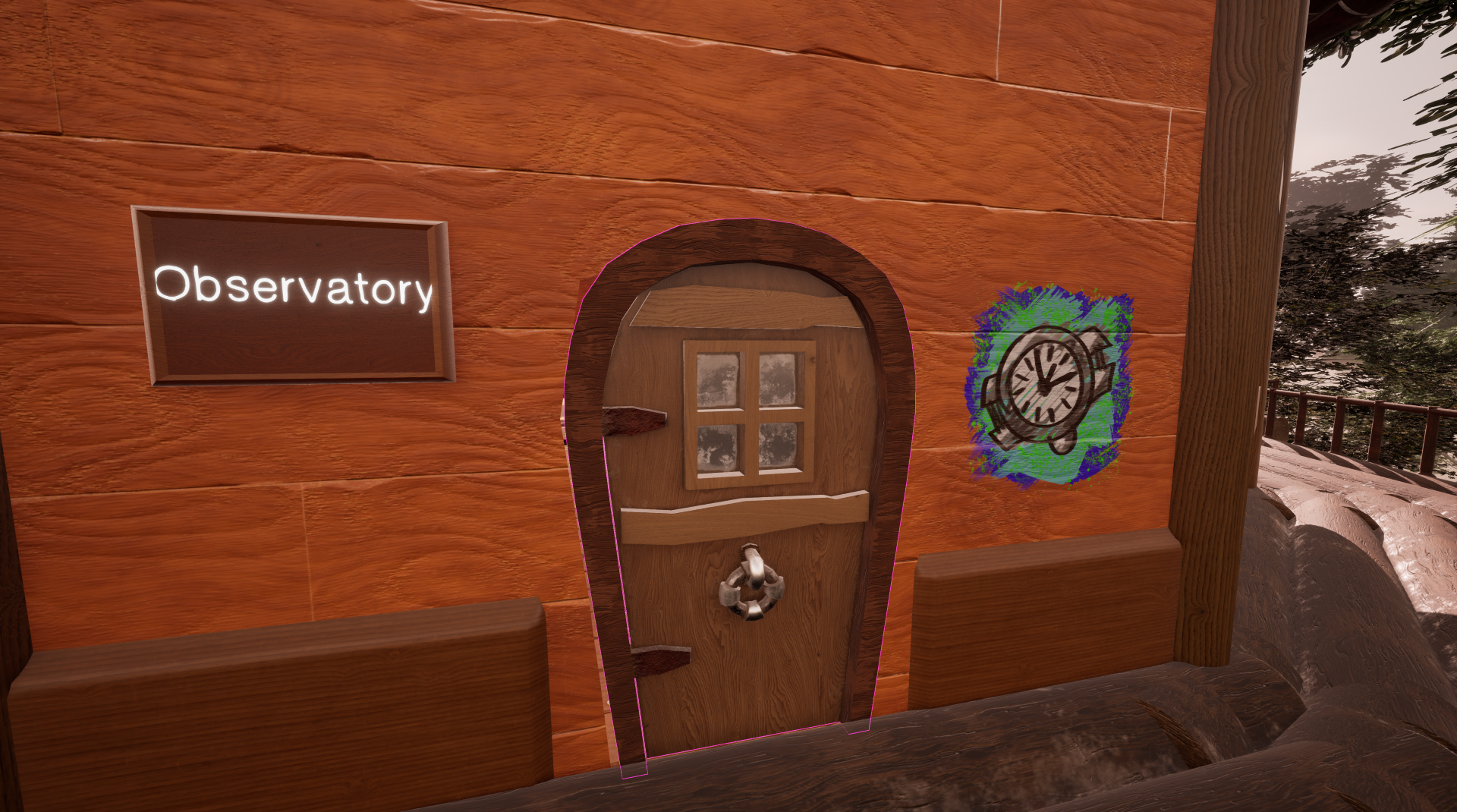 For the lever puzzle, I placed the decal onto the outside wall of the main treehouse, but with part of it also placed on the balcony pillar, which creates a noticeable gap in the centre of the decal.
