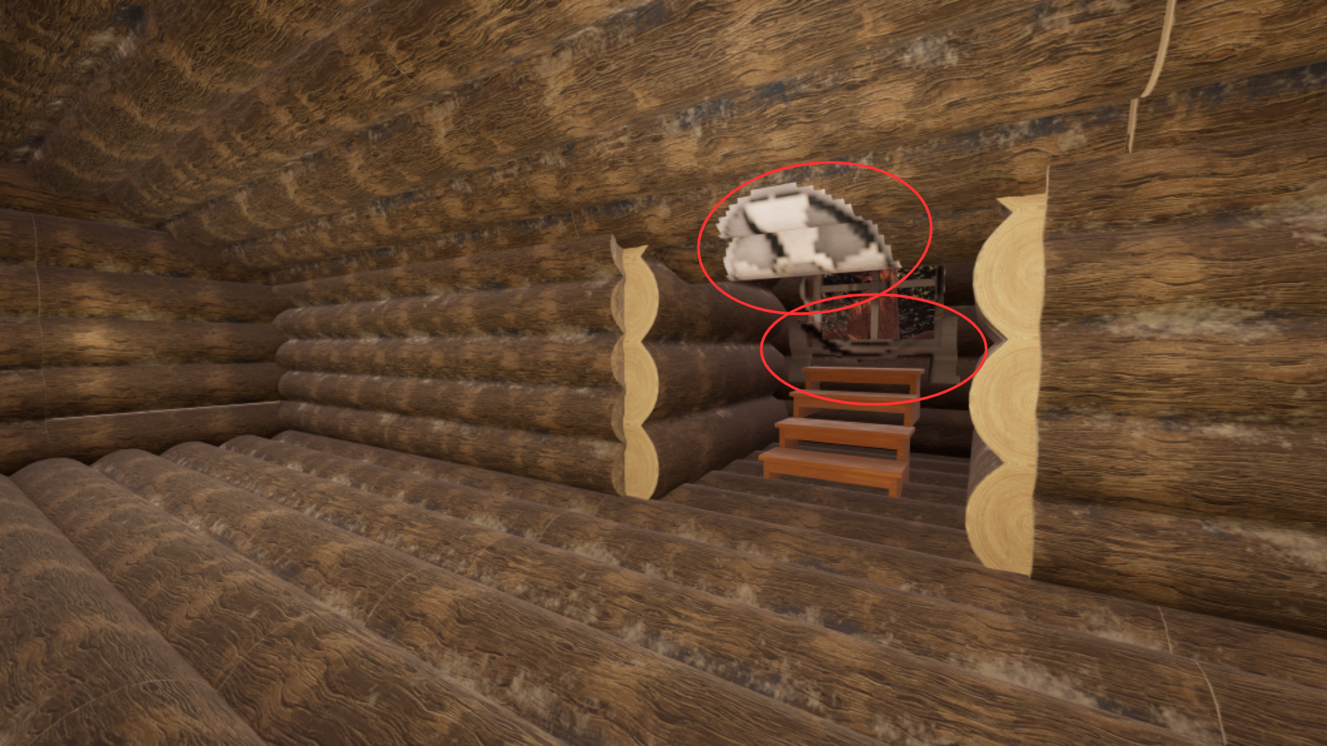 A secondary issue was the decals would often project onto both sides of a static mesh. For example, projecting onto the treehouse wall could cause the decal to appear on both sides of the wall, instead of just the one intended.