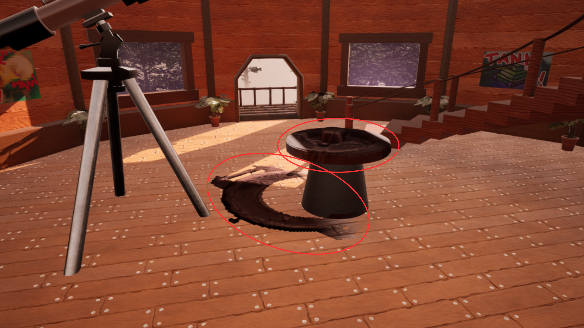 For the light bulb puzzle, I placed the decal on the underside of the treehouse’s bottom floor, attached to the logs and support beam.