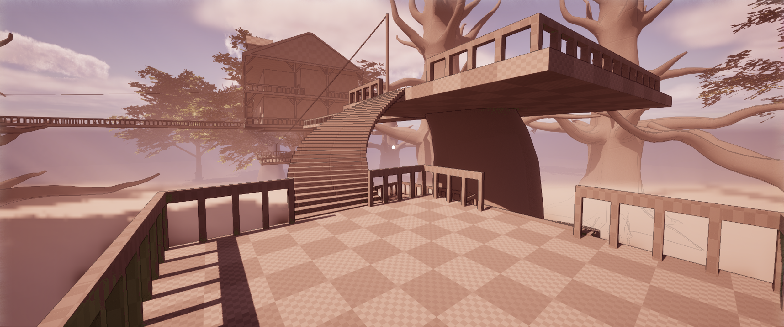 Early development screenshots of treehouse level greybox