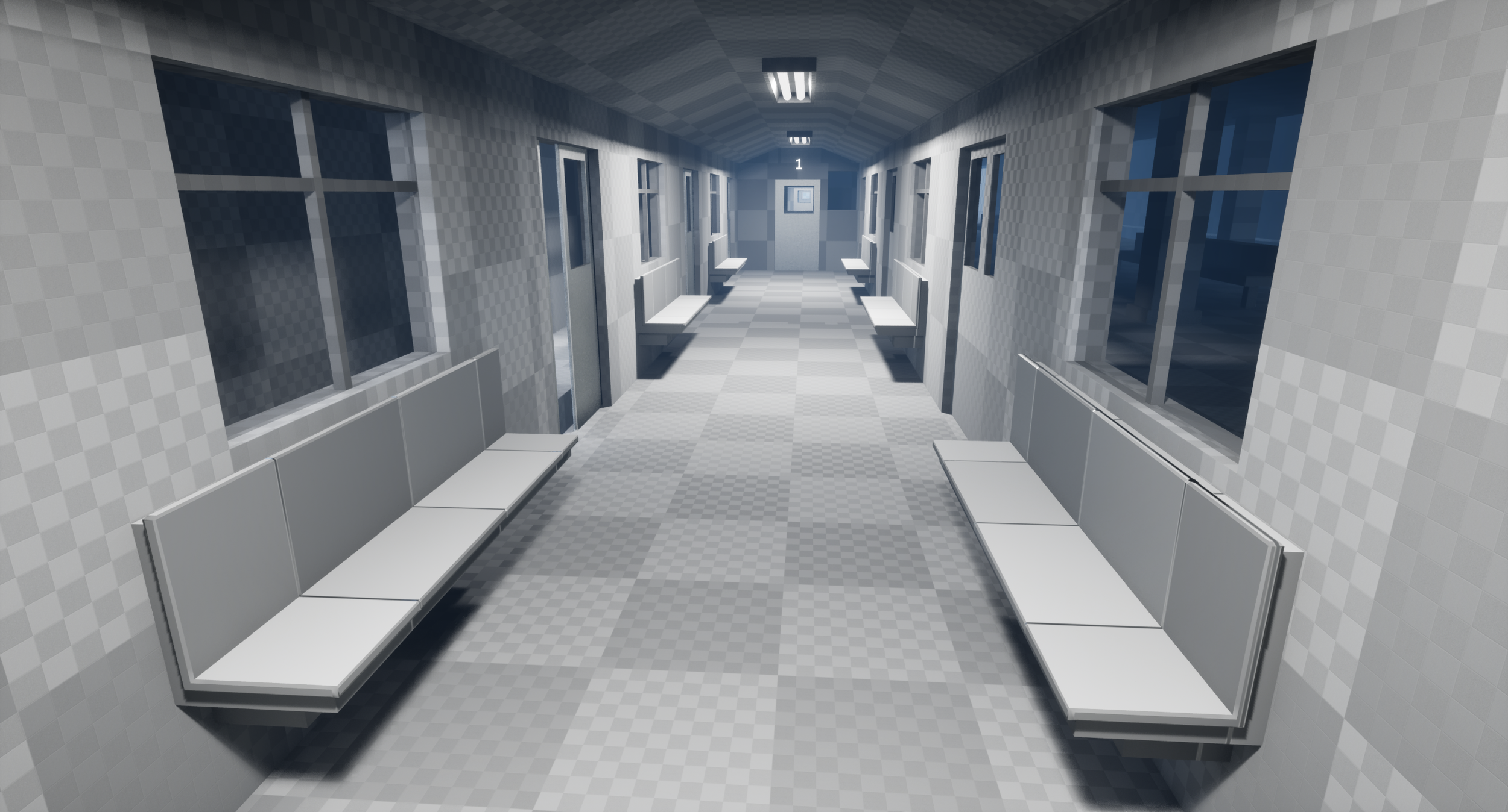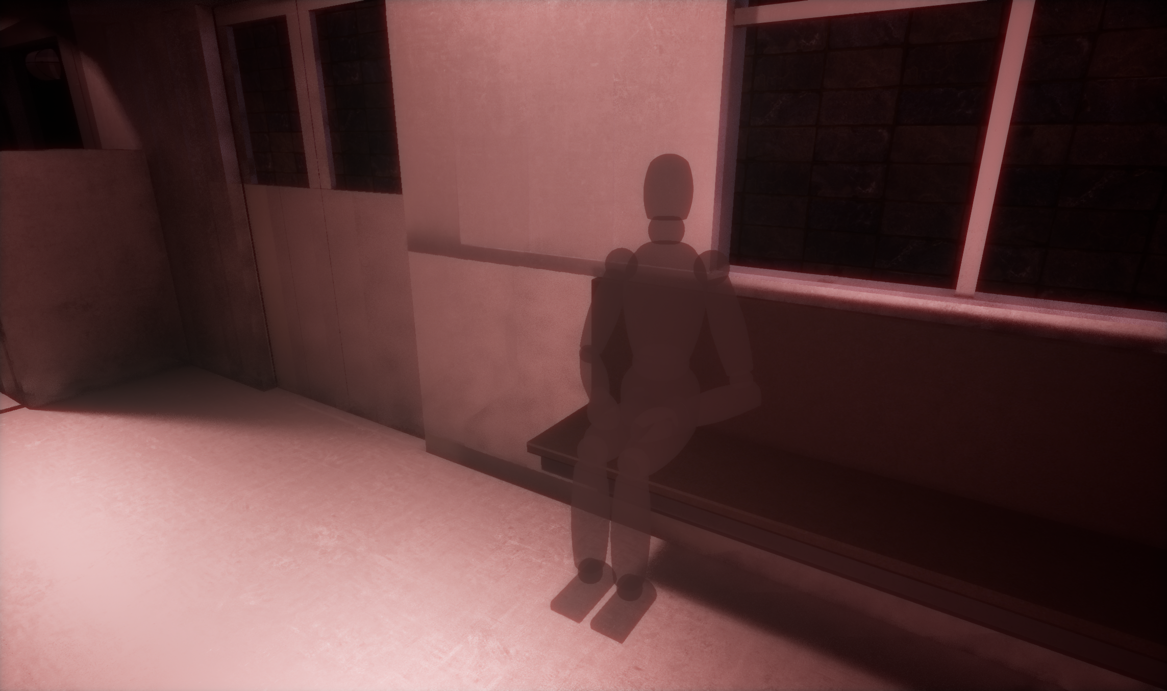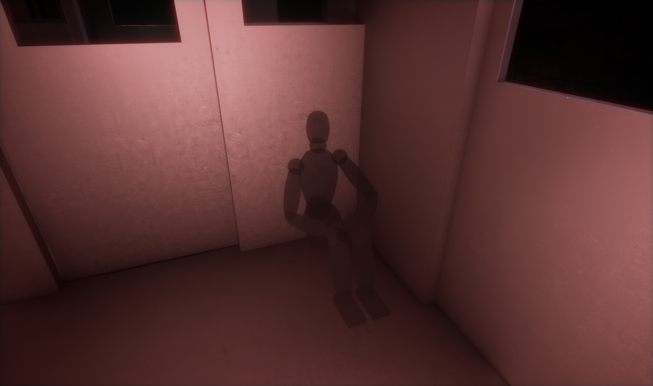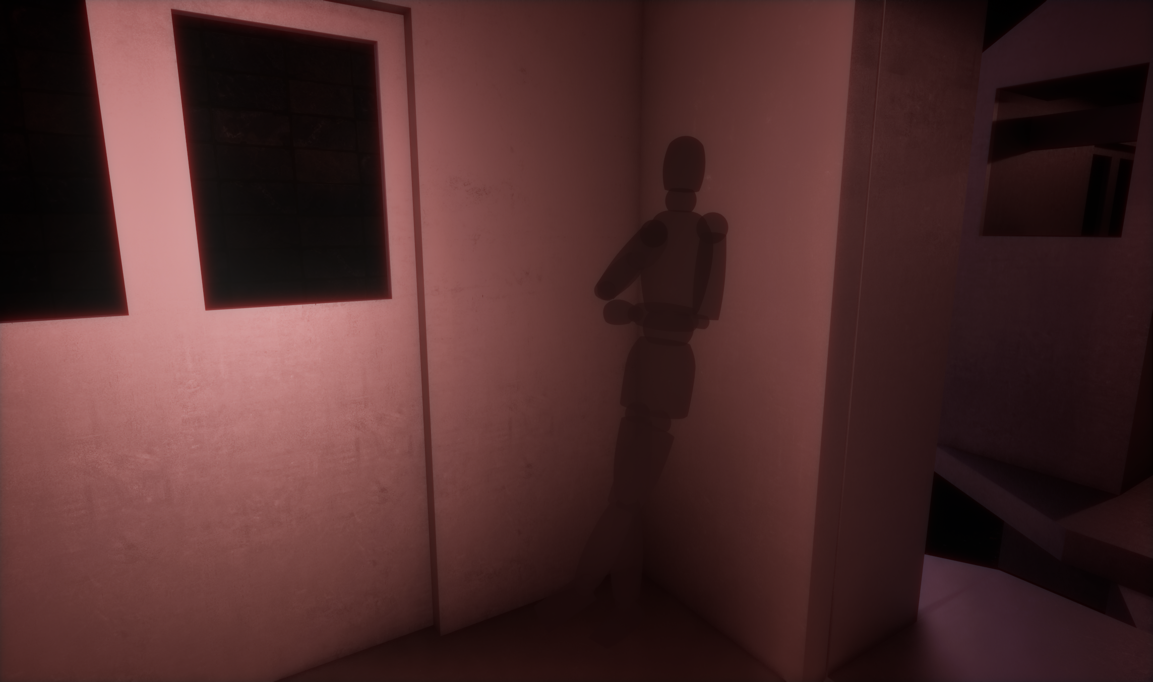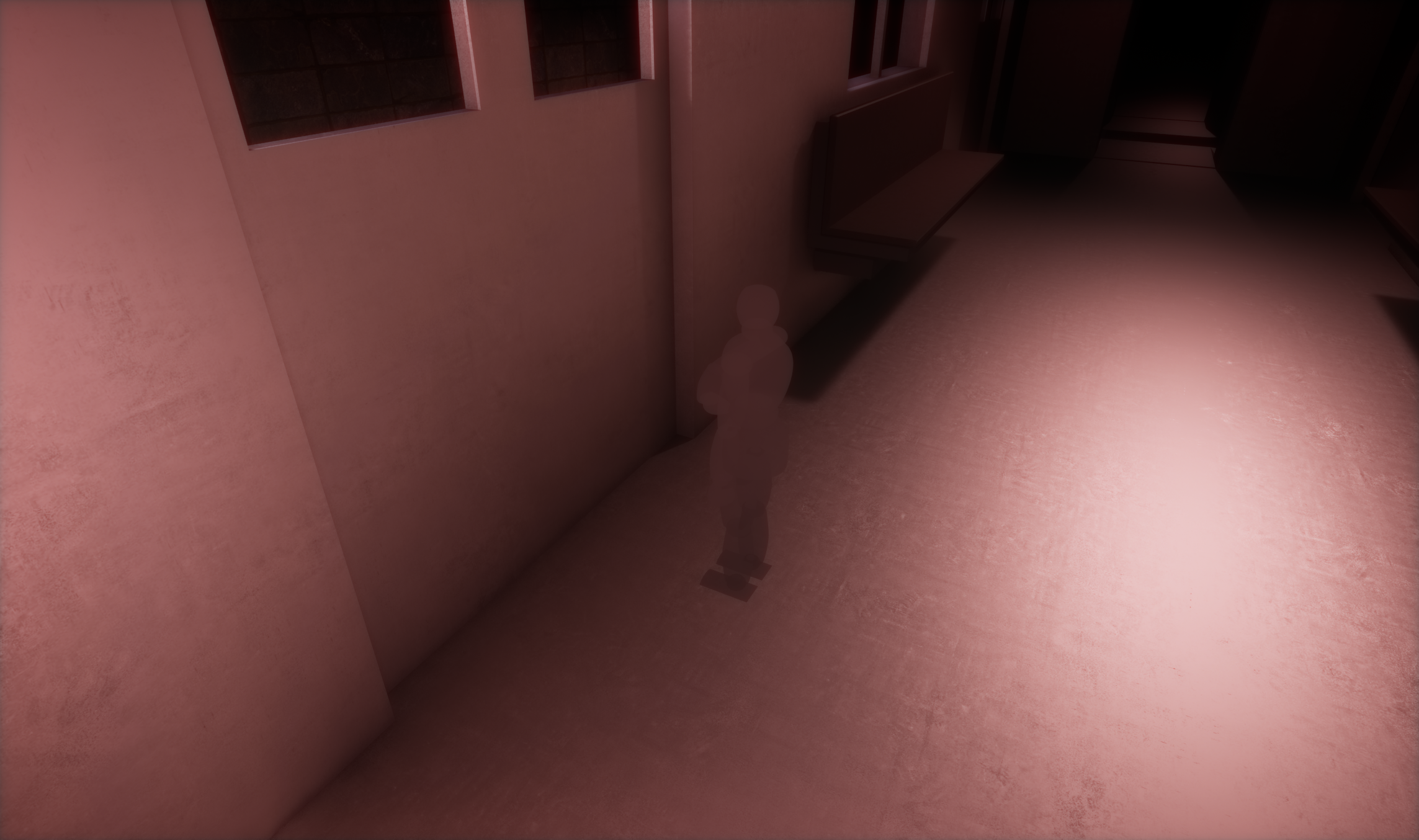 To avoid any of this transition from being visible to the player, I used a combination of volumetric fog, sparse lighting, and a screen vignette.